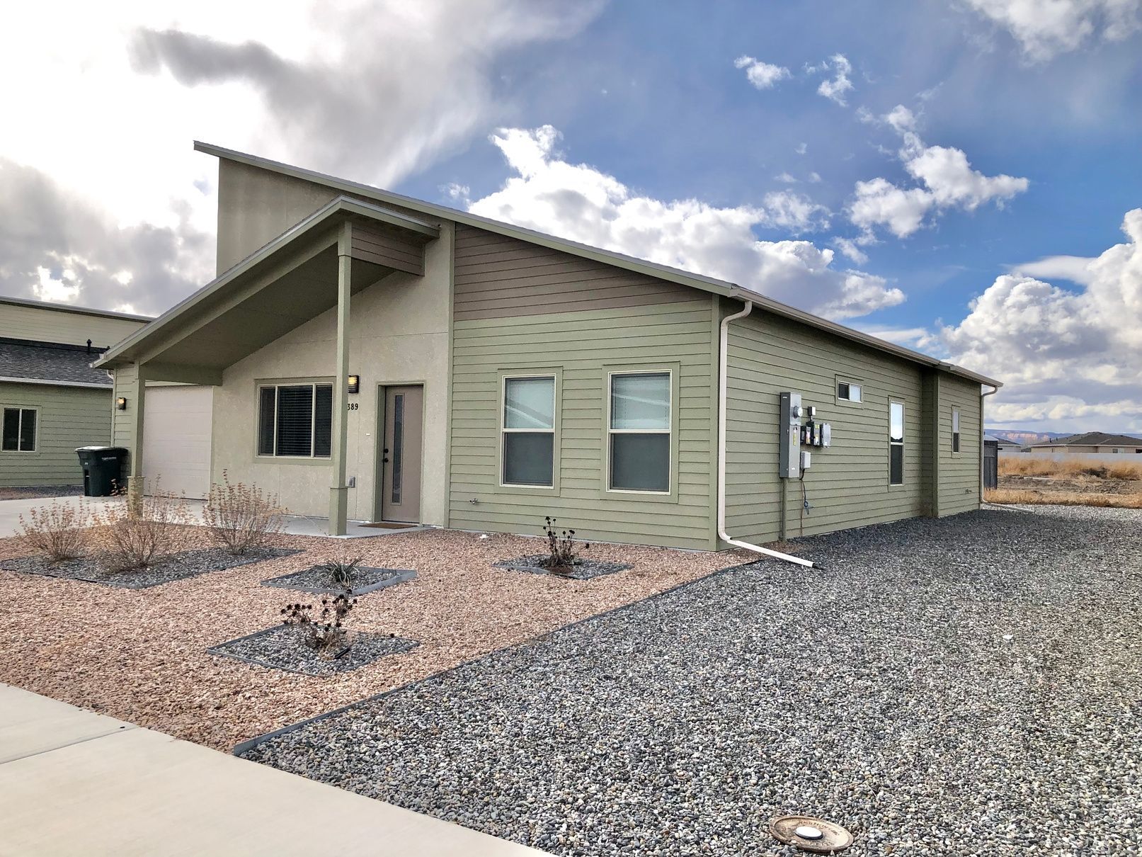 Each home offers a 12' vaulted ceiling (per plan), skip trowel drywall texture, and a finished garage. Designed for easy living with low-maintenance siding and xeriscaped front landscaping.